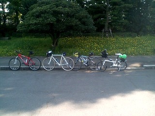 左からhilowさん、ばっちゃんさん、僕、ussyさんの自転車。