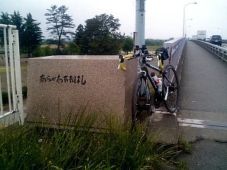 荒川大橋でお決まりの写真をパチリ。