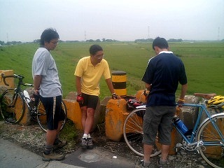 どうしようか迷っていたら、何やら速い集団が僕を追い抜いていったので、どうせこの人達も荒川CRを走るのだろうと決めつけ、必死で後ろをついて行きました。