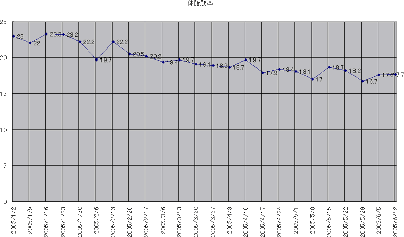 体脂肪率は少々波があってまだまだ頑張らないといけませんが最終的には目標は高く1桁台になりたいと思っています。