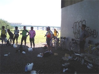 途中で持参したLIVESTRONGバンドをばっちゃんさんに捌いてもらいましたが、このバンドは癌基金という枠を越えて自転車仲間の間でとても重要な意味を持っているんだなと思えるほどの盛況ぶり。