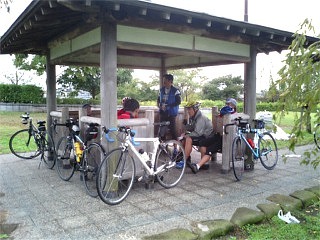ここで今後の行程を打ち合わせしましたが、雨もほぼ止んでいたのと関宿城まで20kmも無い距離だったので全員一致でお城を目指すことに。