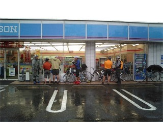 第3集合地点の野田橋付近のローソンに到着したときは今日1番の強い雨。