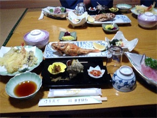 刺身、カサゴの唐揚げ、天麩羅等の海の幸を味わうところですが、もうお腹がペコペコだったので何も喋らずにただただ胃の中へ放り込んでいきました(笑)