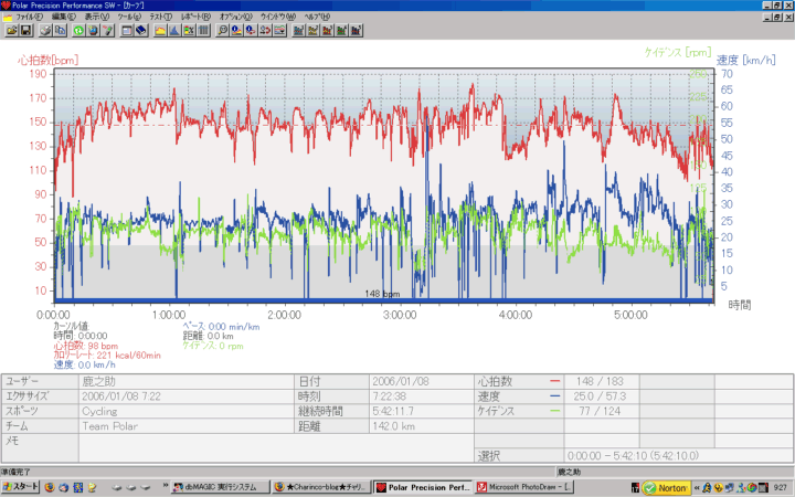 このグラフは5時間以上乗ったときだったし、途中で長い休憩を入れたりしているのでトレーニングとしては役に立たないけれど、きちんと内容を決めたトレーニングならかなり役立つ内容が表示してあると思う。