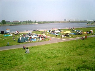 岩淵水門そばではバーベキューをやっている人がたくさん。