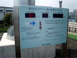 荒川ロックゲートに設置されている風速計。