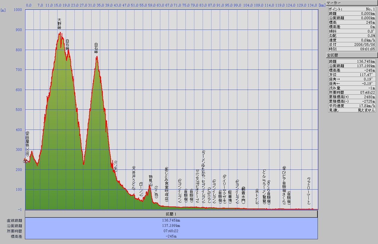 6kmちょいの登りを30分を切れるかどうかが1つの目安っぽかったが、結局33分50秒…orz