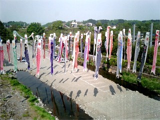横瀬川、武甲キャンプ場ではものすごい数の鯉のぼり。