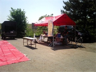 物見山を登り切った左手に、CP1を兼ねたエイドステーション発見。