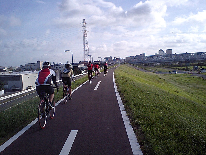 荒川CRに比べると道が細いので、しっかりと1列になって進む。
