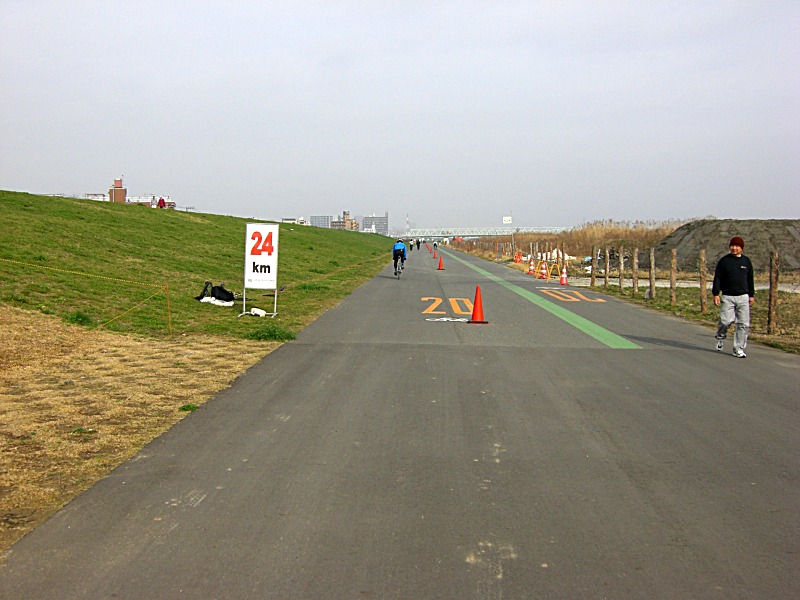 今日は東京・荒川市民マラソンの開催日だったので、先頭グループにぶつかったら引き返そうと思い、そこまでは負荷をかけてLT値を維持しながら走ります。