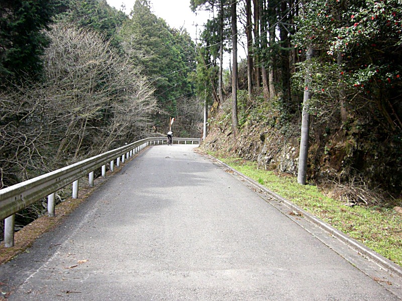 山奥へ消えていく坂道を目にして不安が広がりますが、どうせ抜かれるならあまり遅れないようにと思って早めに出発。