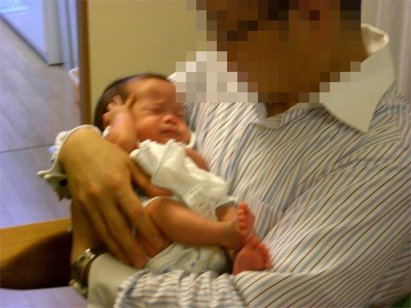 美味しい肉を食べながら話も弾み、ショーゴくんは慣れない手つきで赤ちゃんを抱っこさせてもらってました。