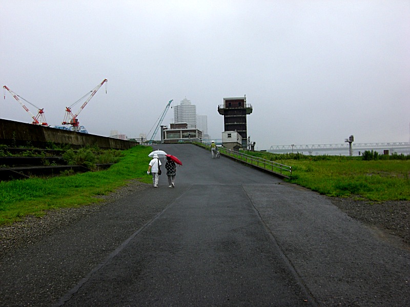 が、荒川CRに入る直前からポツリポツリと雨粒が落ちてきて、あっという間に本降りになってしまいました。