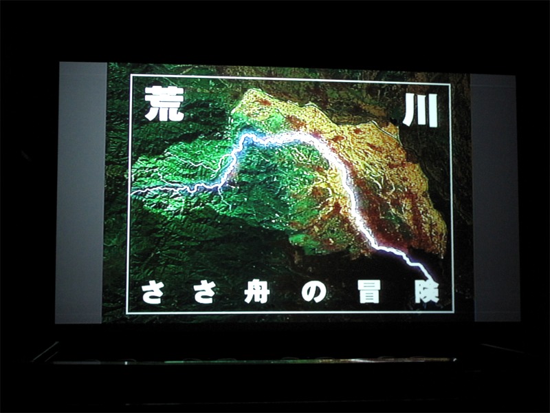 「荒川の源流から東京湾まで、自然や祭りに出会いながらささ舟で下る疑似体験が楽しめる」という謳い文句通り、大画面に連動して座席が動くので実際に船に乗っているよう。