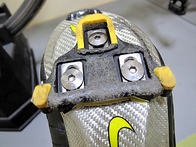 新しいクリートはその位置からずれないように取り付けたけど、左足側はちょっと後ろ過ぎな感じがしていたので、5mmほど前に出すことに。