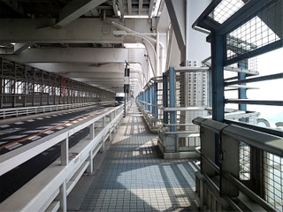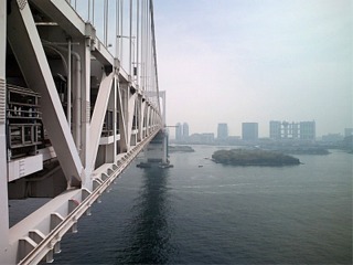 レインボーブリッジの台場側は、芝浦側と違ってエレベーターじゃなく、スロープになっているので走りながら降りられます。