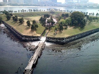 1kmほど走ると、目下にお台場という地名の由来になっている第3台場がある台場公園。