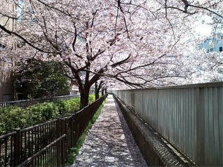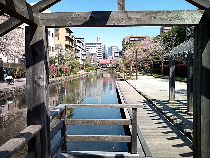 途中、仙台堀川に架かる橋から綺麗な桜並木が見えたので、ちょっと寄り道。