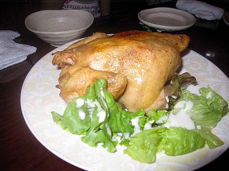 チーズフォンデュと並び、今回のメインディッシュであるローストチキンの登場!
