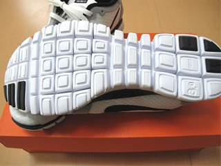 裸足を0とし、シューズを履いた状態を10とした場合、5.0はその中間くらいで、3.0はもっと裸足に近づくため、ヒールカップはもちろん、アッパーにある補強もほとんど無くて1枚の布で包んだ感じ。