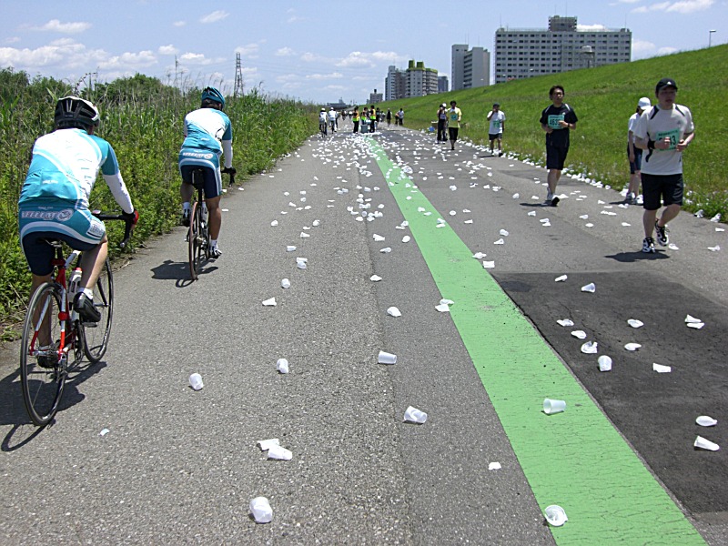 ここでも周りを全く見ないランナー達が、給水を求めて左右に蛇行するのでかなり危険ポイント。