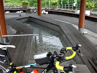 足湯がポカポカと湯気を立てていたので僕も休んでいきたかったけど、ここで休んじゃうと走る気も無くなっちゃうので泣く泣く出発。