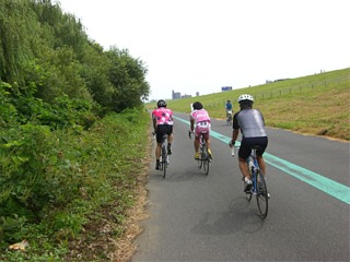 岩淵水門を過ぎてしばらく走っていると、見慣れたピンクのジャージと、1回しかお目にかかっていないフレームに乗った選手とすれ違いました。