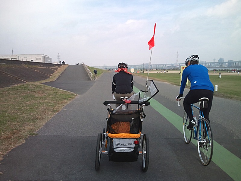 のんびりと岩淵水門を目指しましたが、チャイトレを牽いているussyさんは、かなり負荷がかかっているようでペースがあがらず大変そう。