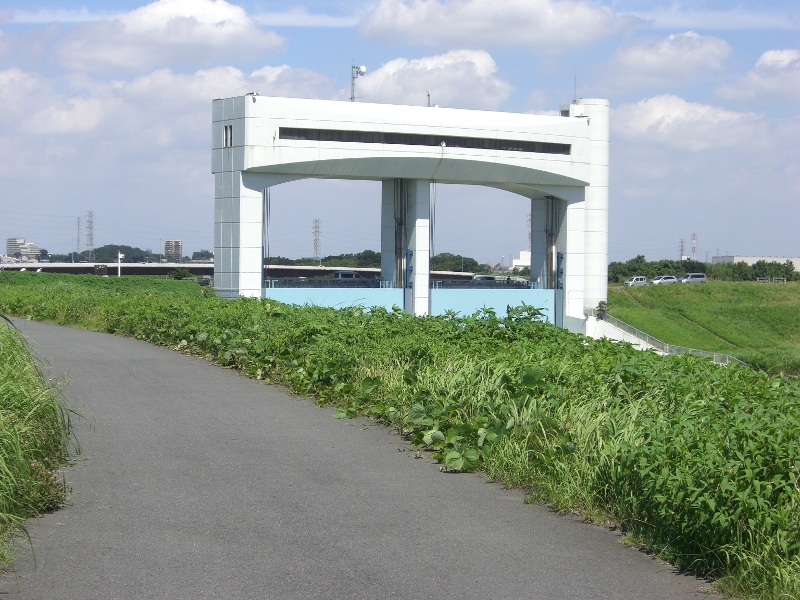 暑さに体力を奪われながら必死に集団について行き、ようやく朝霞水門へ到着。