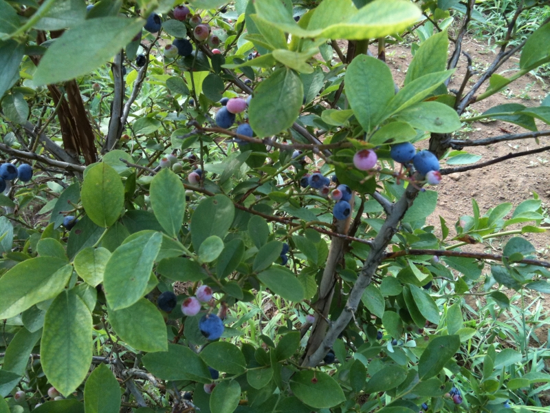同じ木にピンクとブルーの実がなってますが、取るのはブルーの実だけ。
