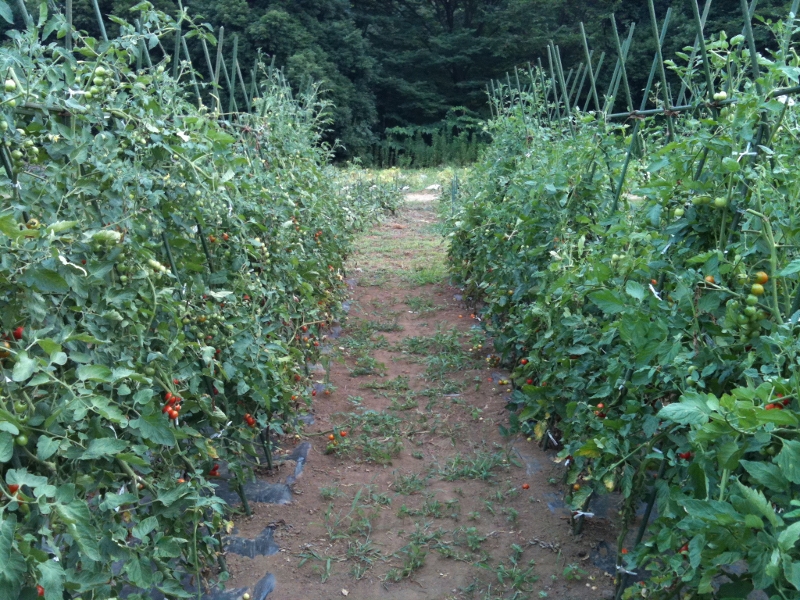 フットサルコートくらいの大きさの畑に入って、ひと粒ひと粒つまんでもぎ取っていきます。