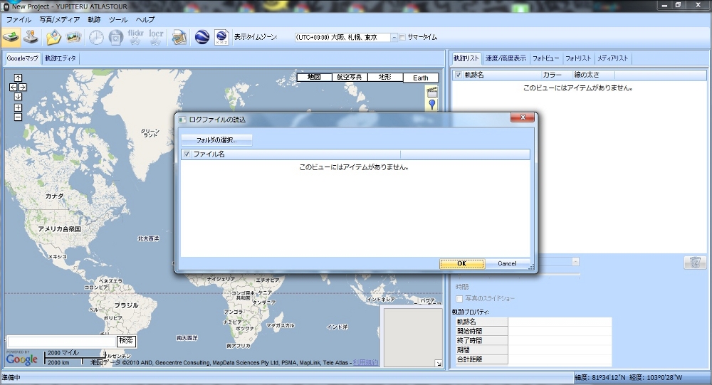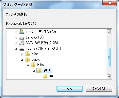 ログは"track/bike/YYYY/MM"の中に保存されているので、該当月のフォルダを選択して"OK"をクリックするとファイルが選択できるようになります。