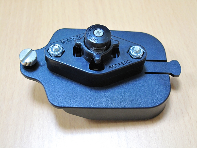 ホルダーの裏側に、ラムマウントの部品をドライバーで取り付けます。
