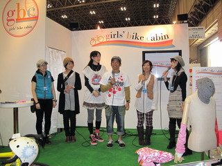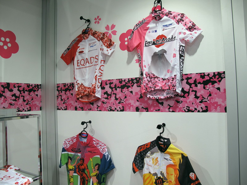 ここは女性のためのインフォメーションスペースで、女性好みなウェアやサイクルパーツなどが展示されてます。