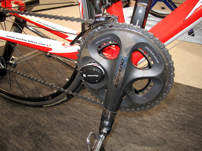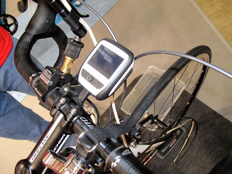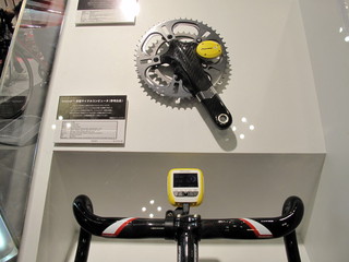 クランク部分に取り付けた装置から、ブラケット部分のコンピュータへ情報が飛ぶ仕組みです。