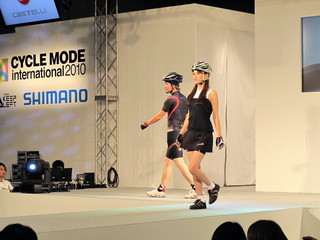 メインステージではサイクルウェアメーカー各社のファッションショーみたいなものをやってます。