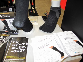 このソックスタイプのサポーターは、足首部分にテーピング効果と同様な加工がされており、回内や回外、外転・内転を抑えるとのこと。