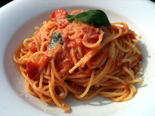 友人Hと合流し、注文したのは写真の「フレッシュトマトとバジルのパスタ」。