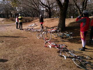 小径車の方や初めてロードバイクに乗った方もいるので、僕やMasaki_Kidoさん、shigeruさんを含めた数名が先行しながら秋ヶ瀬橋を渡り、彩湖に到着してからちょっと一休み。