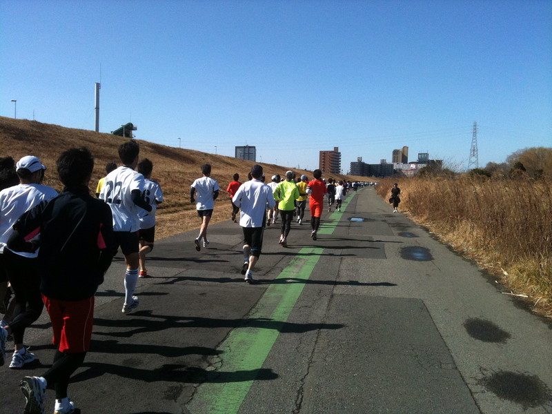 ここで引き返そうかと思っていたら、係員がマラソンランナーと併走しても構わないと言ってくれたので、ぶつからないように気をつけながら北上します。