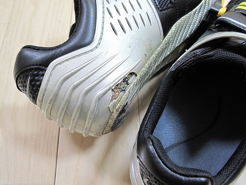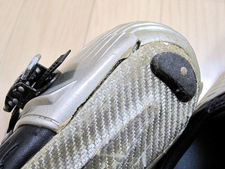 しかし先日の走行会後、新しいクリートに交換しようとシューズを洗っていたら、ヒールカップに大きな亀裂が入っているのを発見!