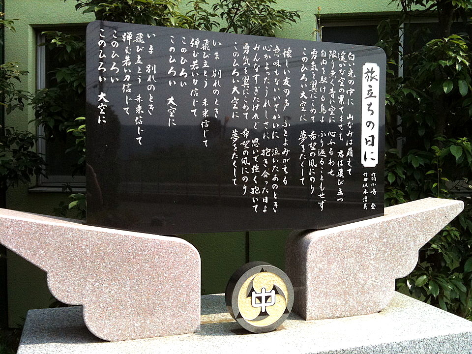 校歌が刻んである石碑よりも、この「旅立ちの日に」の石碑のほうが目立つし立派。