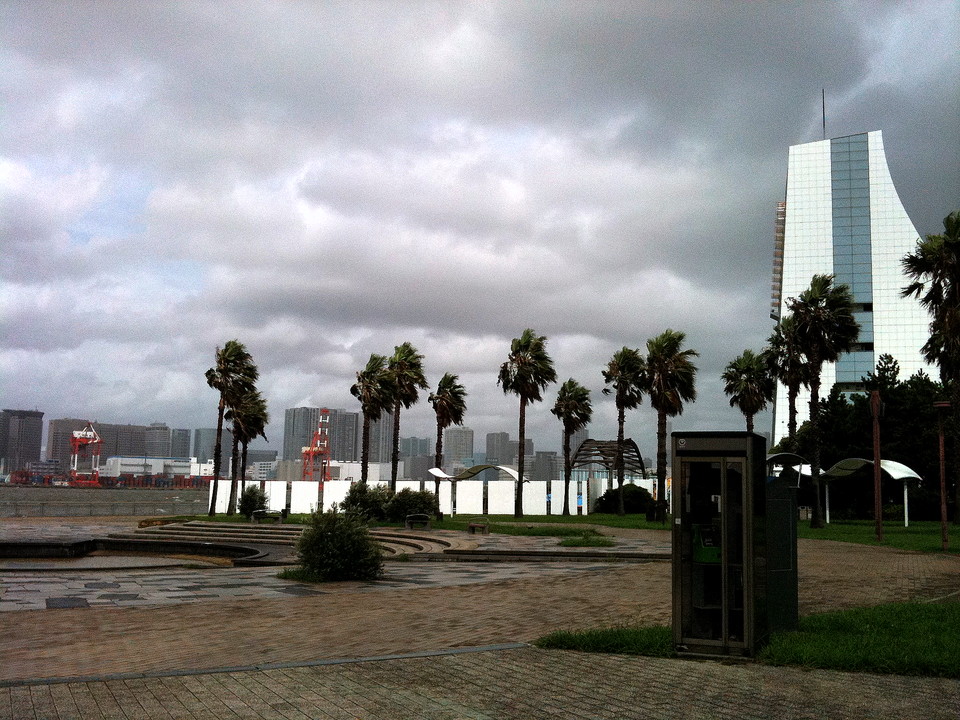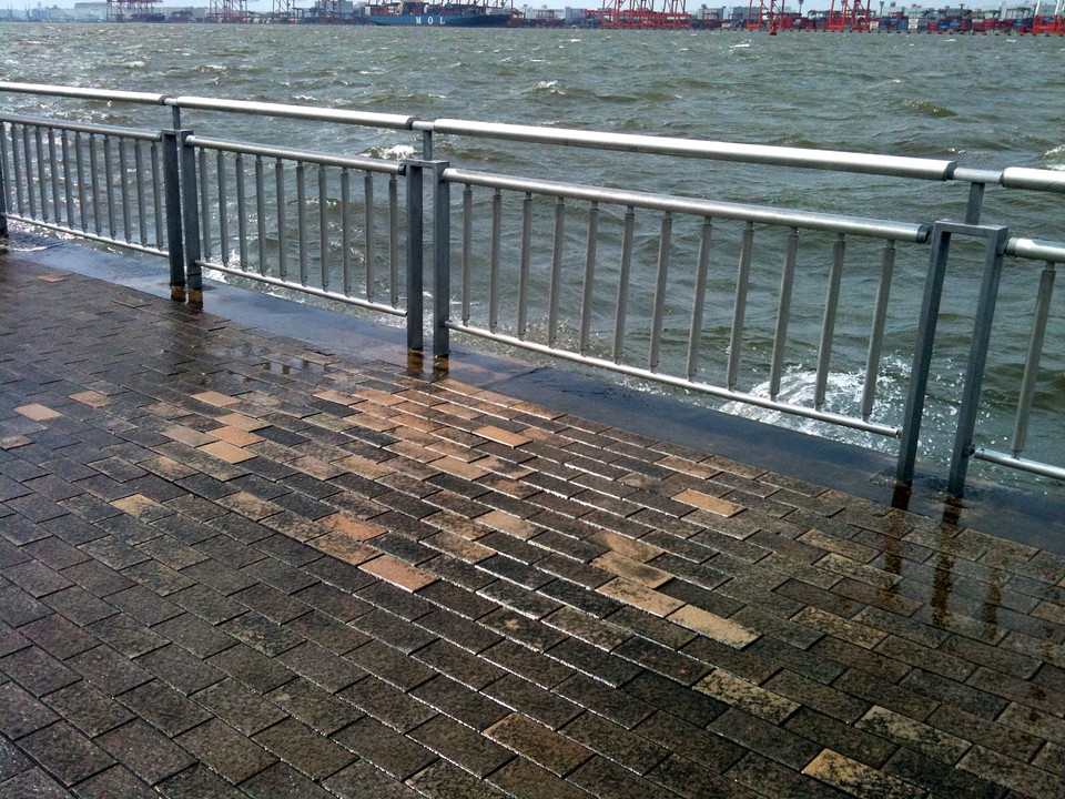 潮風公園の前を通ったところで雨がポツポツ降り始め、iPhoneをジップロックに入れようと立ち止まると、一気に大雨になりました。