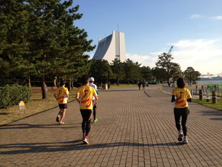 大江戸温泉の横にあるフットサル場に集合し、着替えを済ませて潮風公園方面に走り出します。