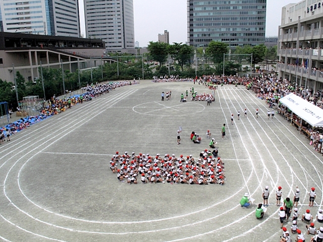 開会式が始まった直後に学校に到着しましたが、観覧者の数が多くて場所を取るのに一苦労。
