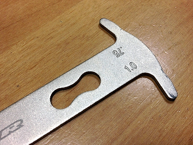これがチェーンのコマに入ると、チェーンがどれくらい伸びているかが確認できる製品になっています。
