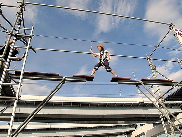 何人かの低学年の子は高さに怖がって進めなくなり、係員が降ろしに行ったりしてました。