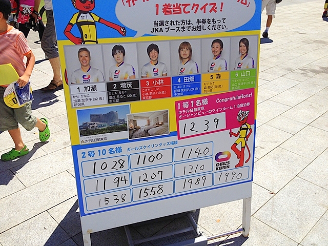 今日もガールズケイリンを観戦しますが、事前に優勝者を予想し、見事に的中されると正解者から抽選でホテル日航の宿泊券がもらえます。